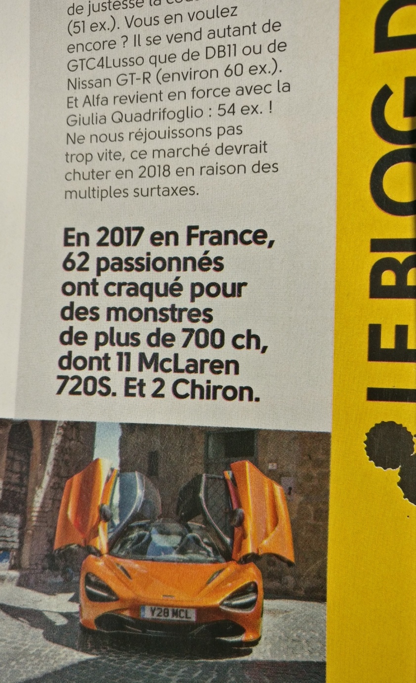 Voici les chiffres d'immatriculations de l'année dernière en Europe ( uniquement ) des voitures dites "exotiques" - 13 % de baisse sur une an...