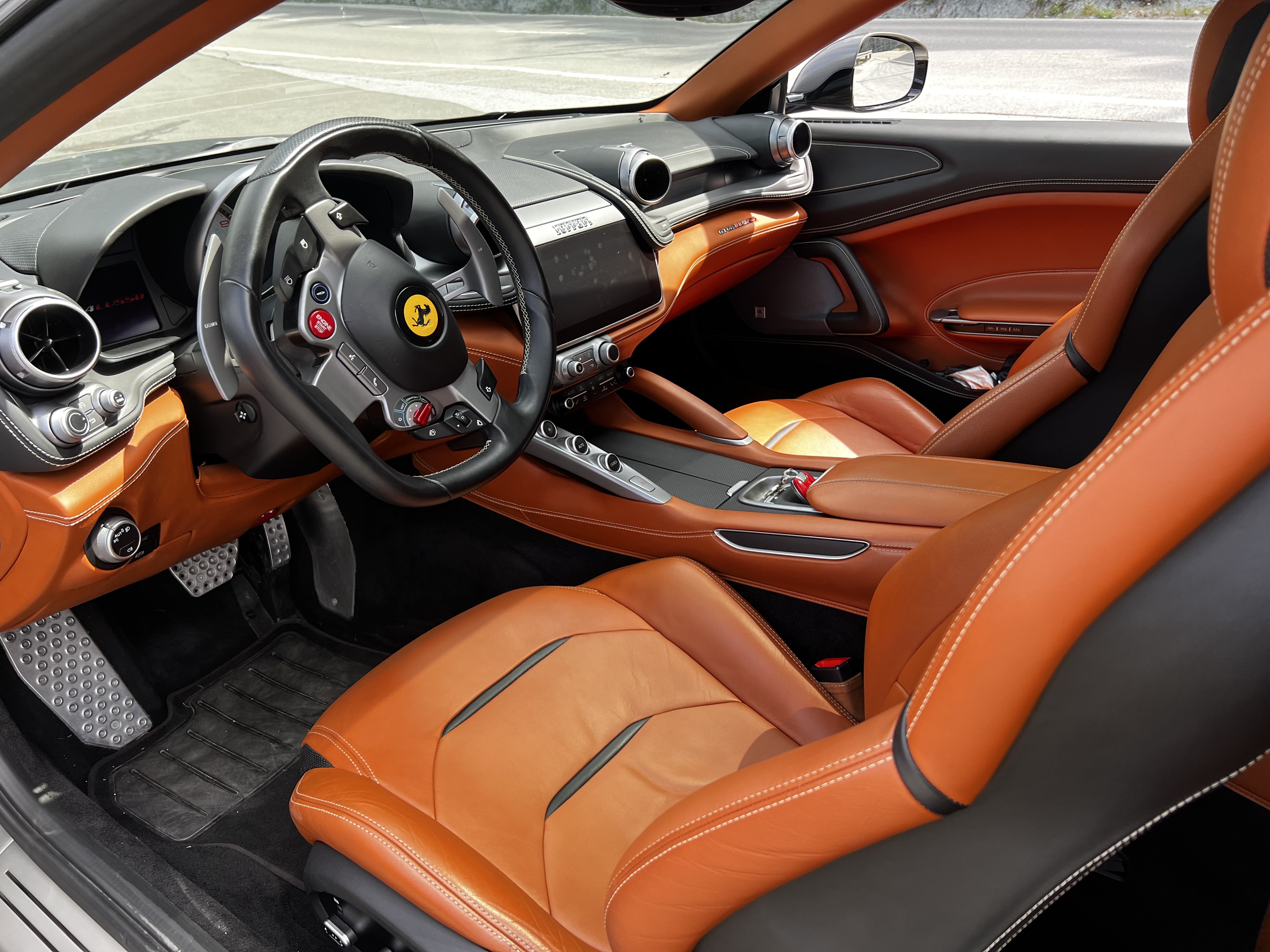 Je vous présente enfin ma belle GTC4 Grigio ferro met/Cuio toscano livrée vendredi et déjà 400km de bonheur à son volant. Elle a été livrée neuve en 2017 chez Niki Hasler à Bâle et j'en suis le troisième propriétaire. Pourquoi une Lusso vous me direz, une 4 places, pas une vraie Ferrari... D'abord j'adore sa ligne de break de chasse, la 456 devient un peu trop exigüe pour voyager loin avec mes grands enfants et surtout je veux pouvoir concilier mes deux passions, les Ferrari et le vélo, qui rentre facilement dans le coffre en démontant juste la roue avant. Prochainement direction les Alpes italiennes pour y découvrir les cols. Faire chanter le V12 le long des parois rocheuses c'est le bonheur absolu!🤩