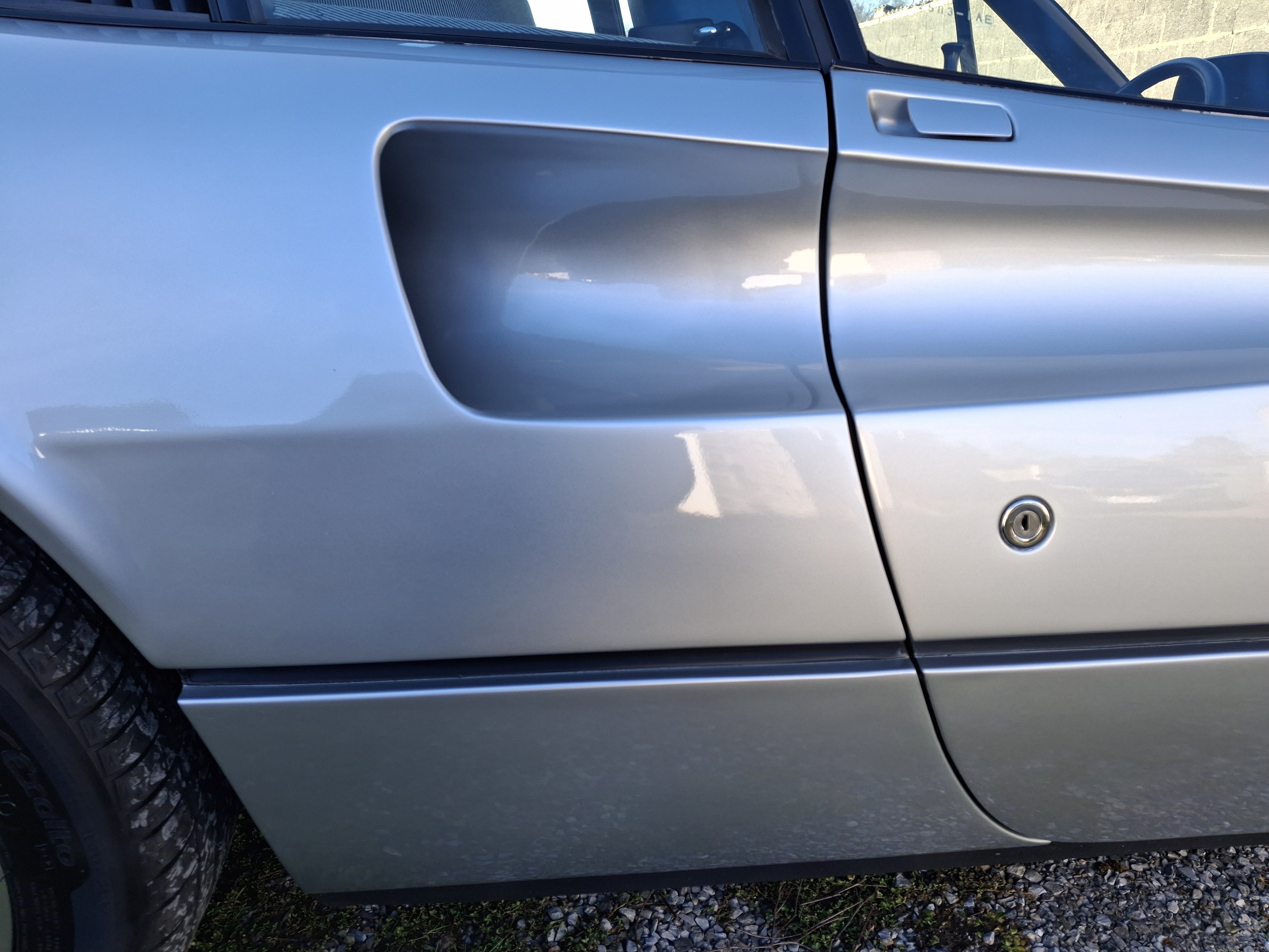 Un des avantages du gris Argento est que les petits défauts et griffes sur la peinture sont peu visible. Cela dit l'auto avait quelques traces lorsque je l'ai acheté et j'en ai ajouté une belle que j'ai maquillé comme un sagouin, n'est pas artiste peintre qui veut !