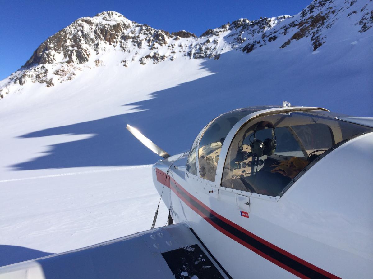Je vous poste une photo de mon avion prise sur un glacier cet hiver et une montrant la vue une fois posé.