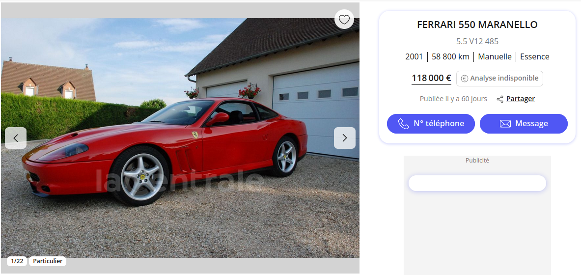 mais au regard du prix des 550 actuellement et pour celui qui veut une 550, j’hésite trouve l’annonce digne d’intérêt.