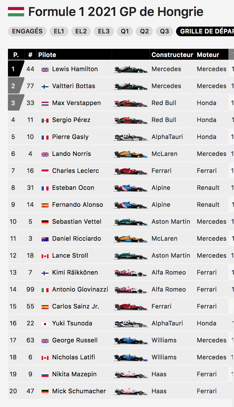 Concours 2021 des pronostics des G.P. de F1