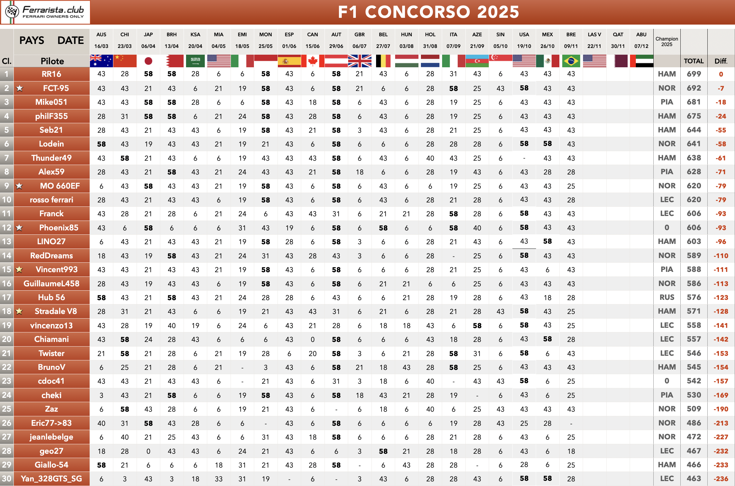 en l'état des choses actuel (Norris champion), voici ce que cela donnerait