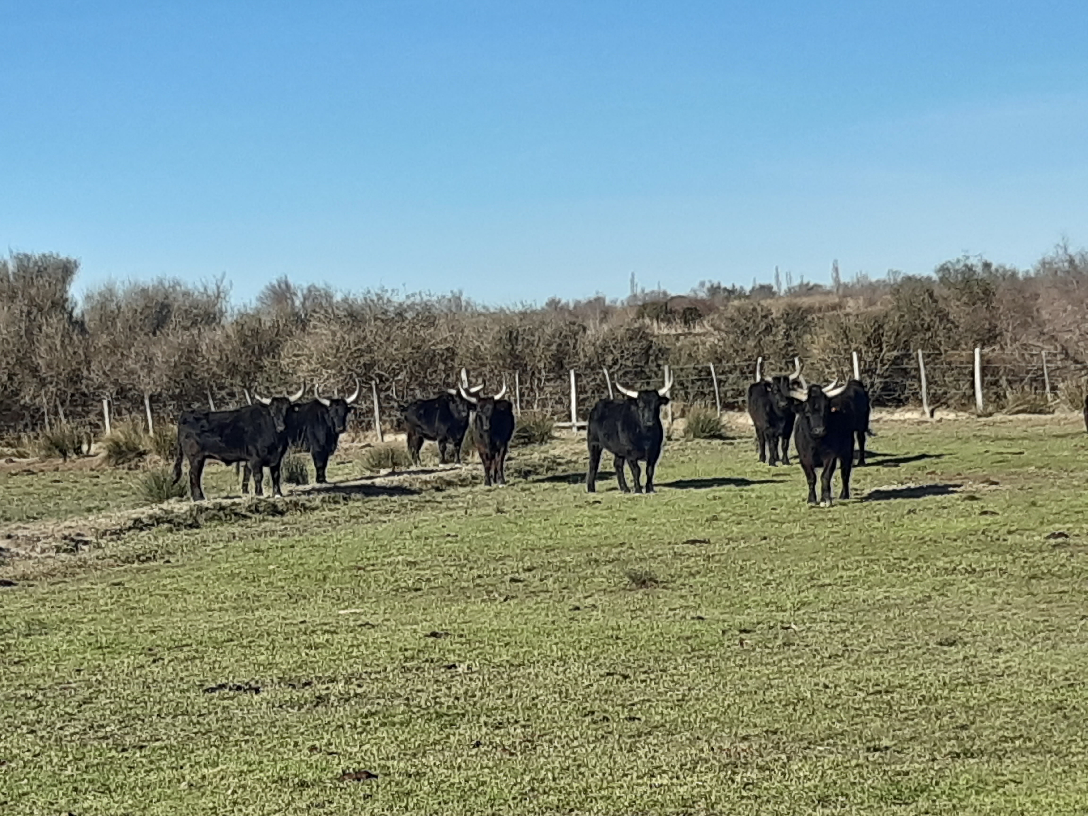Le mistral glacial dans la plaine camarguaise nous à bien refroidis. Mais heureusement, la gardiane et la chaleur humaine nous ont bien rechauffés ensuite.