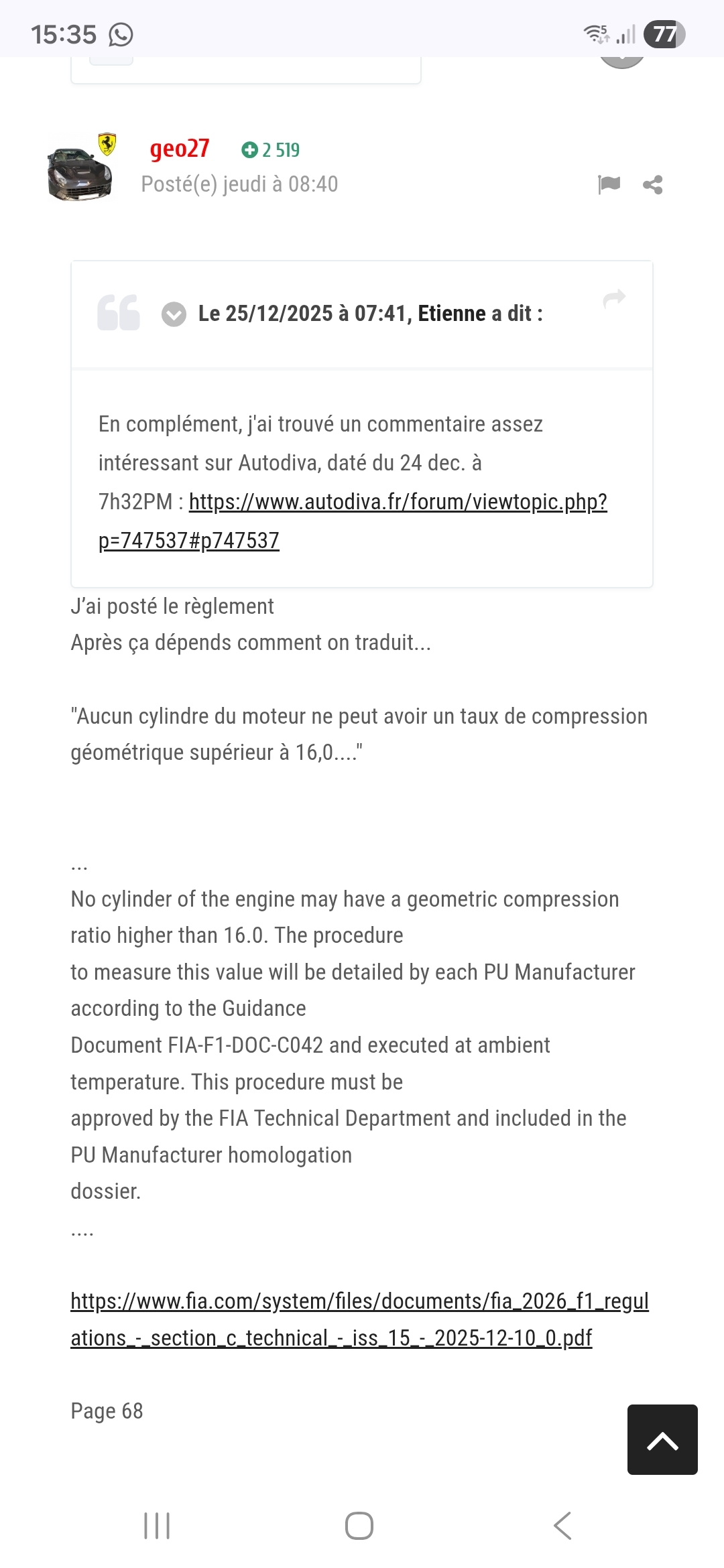 La FIA est en porte à faux maintenant. Ils ont homologués le moteur et Ils n'ont pas la possibilité de modifier le règlement puisqu'il y a un préavis.