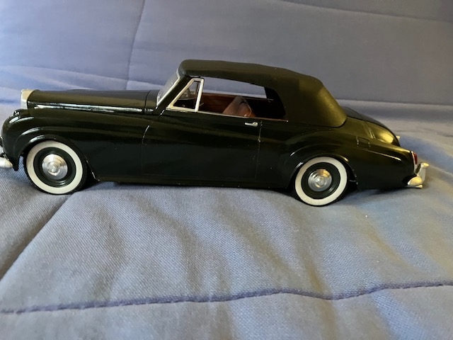 La Bentley est une curiosité: 1/20ème. Avec capote amovible, mobilier intérieur et capot moteur ouvrant en 2 battants. Roues avant orientables.