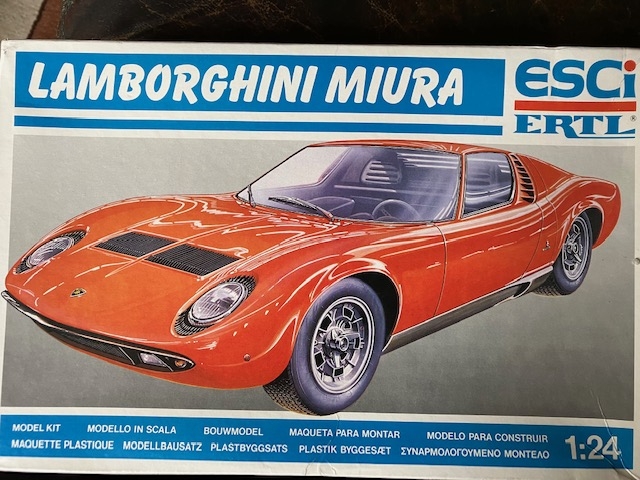 Et une maquette pour mon mur d'une Lamborghini Miura au 1/24ème. Marque ESCI ERTL made in USA. Neuve, ensachée.