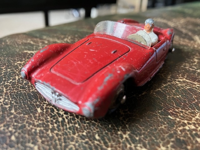 Une Maserati avec pilote. Dinky-Toys France. Un peu "jouée" mais complète. 1/43ème.