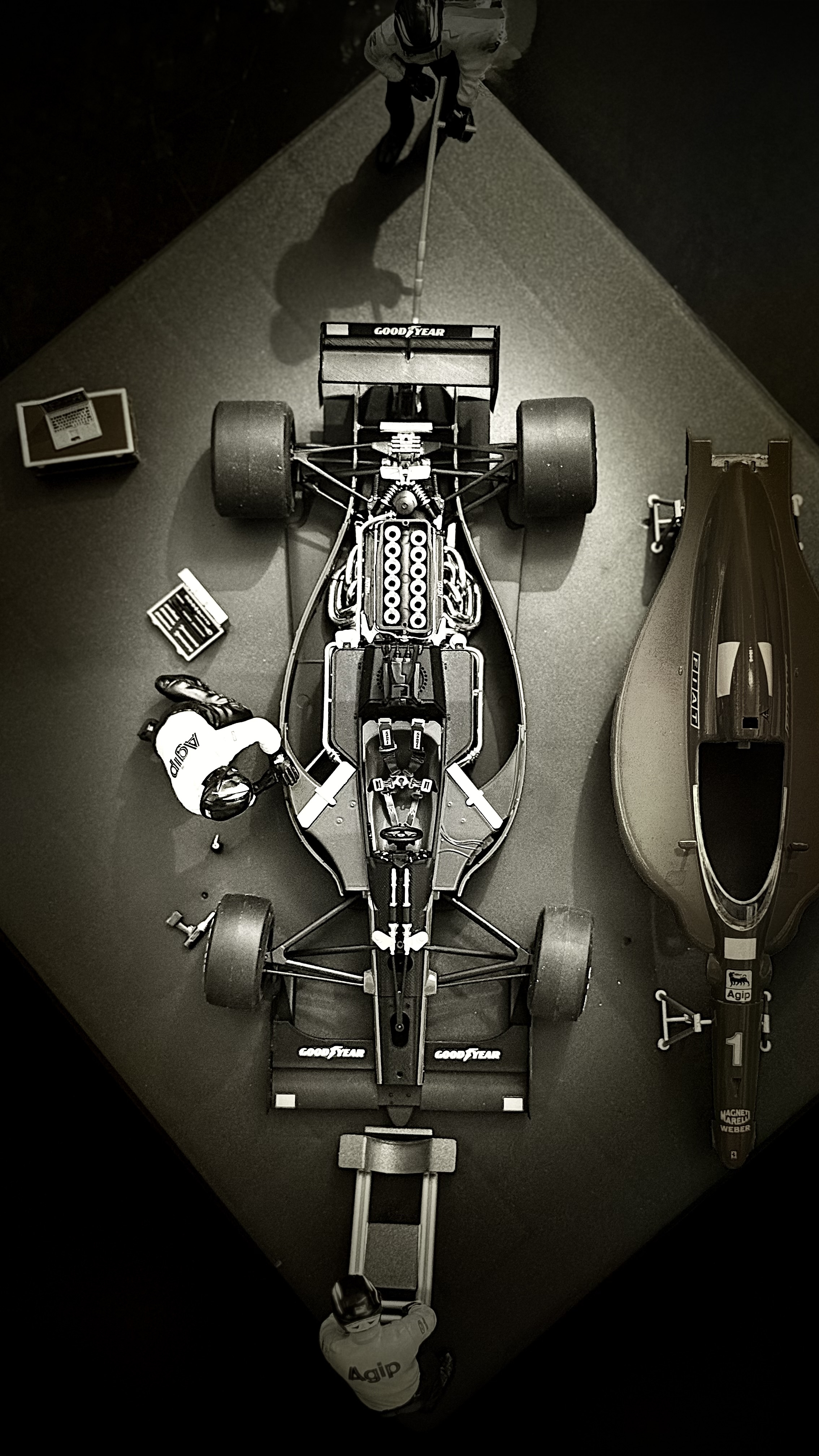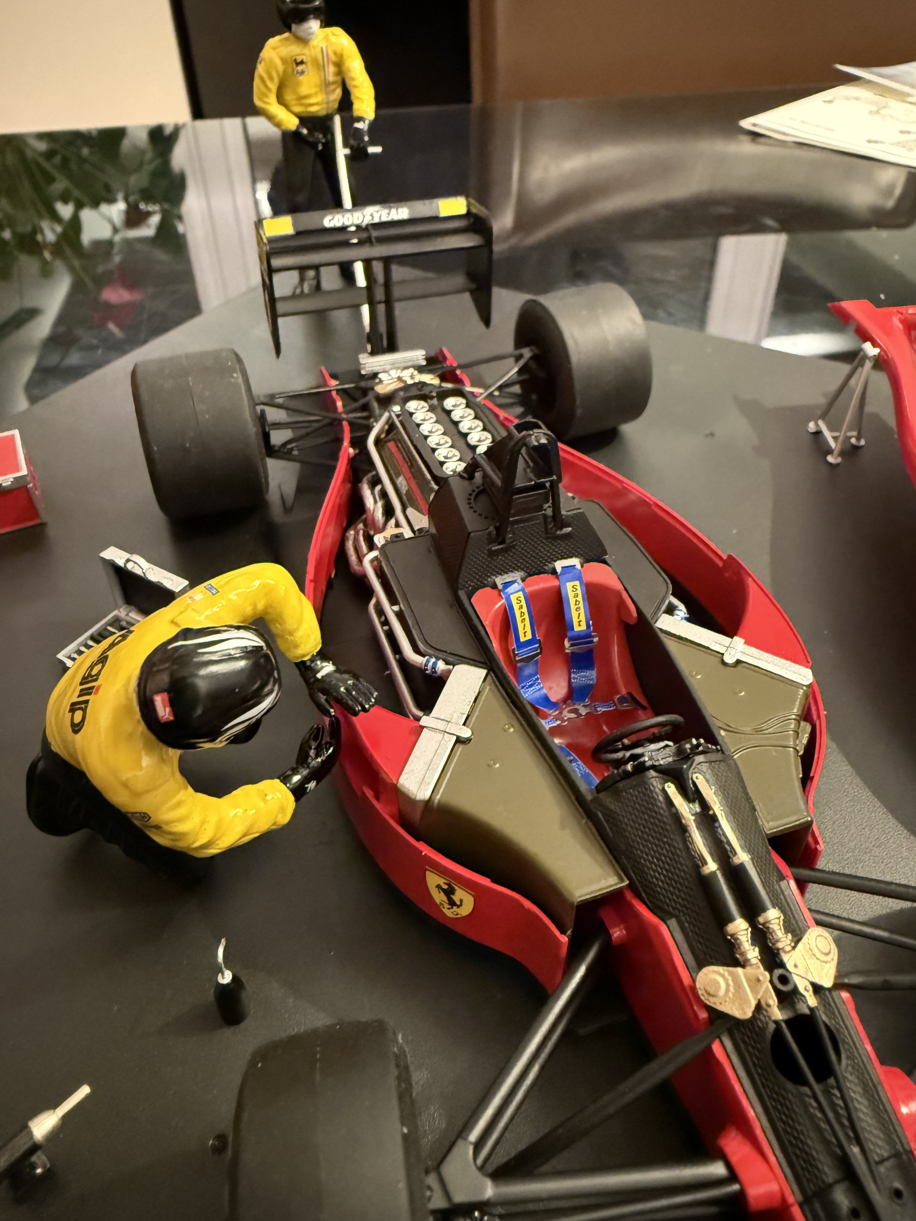 En ces fêtes de fin d’année j’ai enfin pu (presque) terminer la F1 641/2 gagnant le GP de France de 1989 (A. Prost). Elle est au 1/20 et étant loin d’être parfaite j’ai décidé de la mettre en scène (avec qq anachronismes pour les puristes 😱).