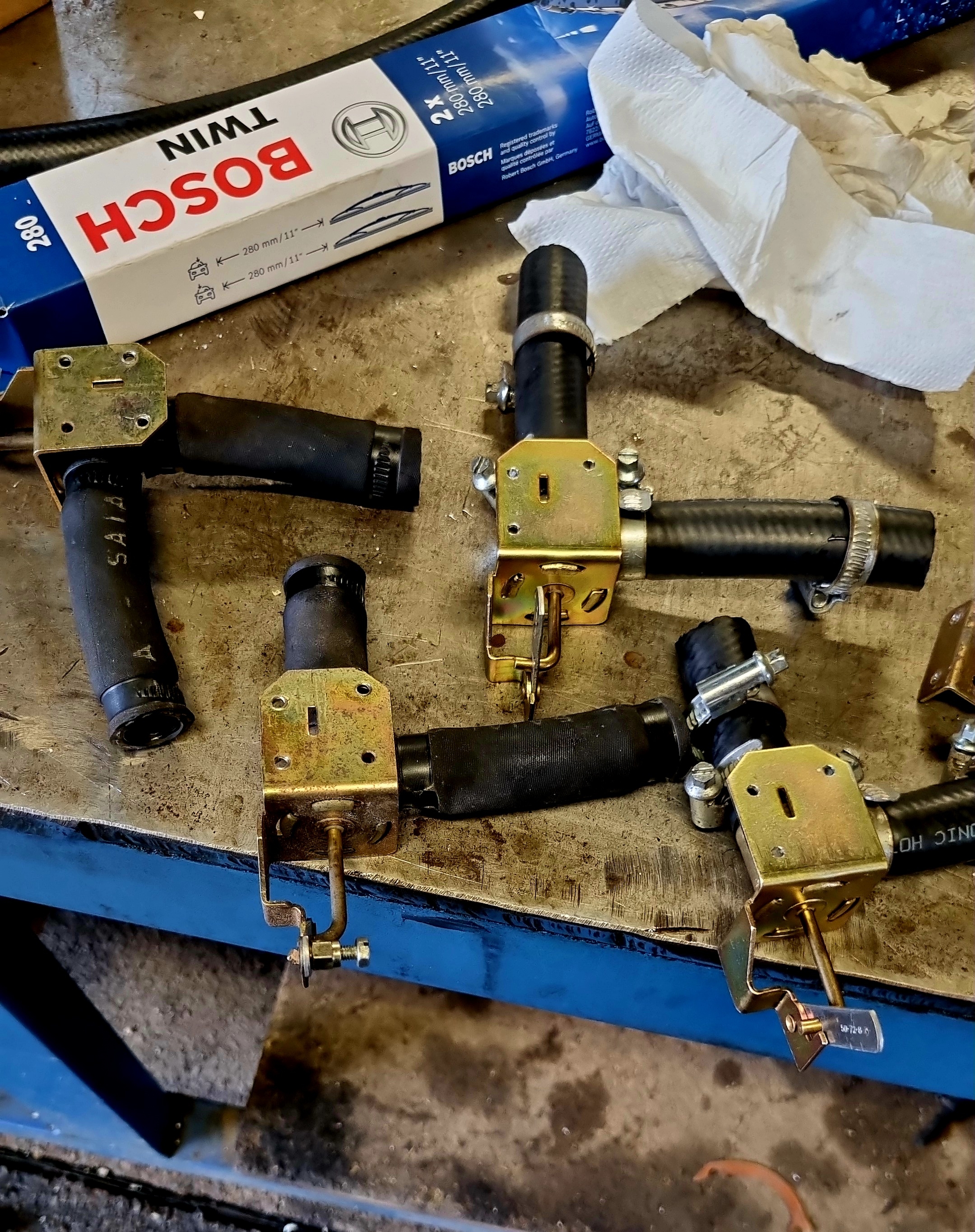 Et les vannes d'Opel sont montées, juste 3 trous de 3mn à faire, en plus celle du bas possède une pièce qui sert de gabarit, top ! à gauche les anciennes, les durites était encore bonne, fatiguée, mais rien de grave, elle aurait encore tenu longtemps, je pense. À droite les nouvelles .